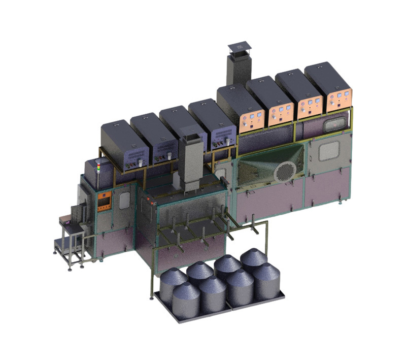 擊落的廢棄噴涂粉塵和玻璃砂通過腔室內旋風分離裝置和除塵設備自動除塵、分離并再次清洗芯子;比傳統滾筒式的方式要溫柔,并有效的保護噴涂層不被撞擊設備采用人工上料,下料上到單獨的收料盤,也可根據客戶需求定制收料方式